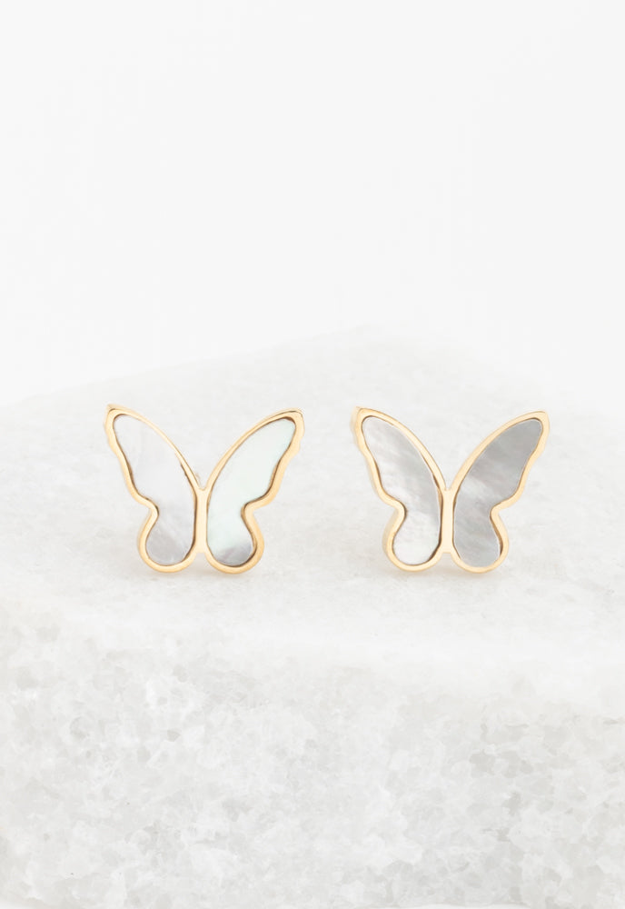 14k gold plated stainless steel and mother-of-pearl earrings